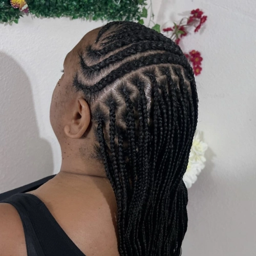 Classiques et soignées, les nattes collées offrent un style élégant et facile à entretenir. Elles protègent vos cheveux naturels tout en sublimant vos traits.
